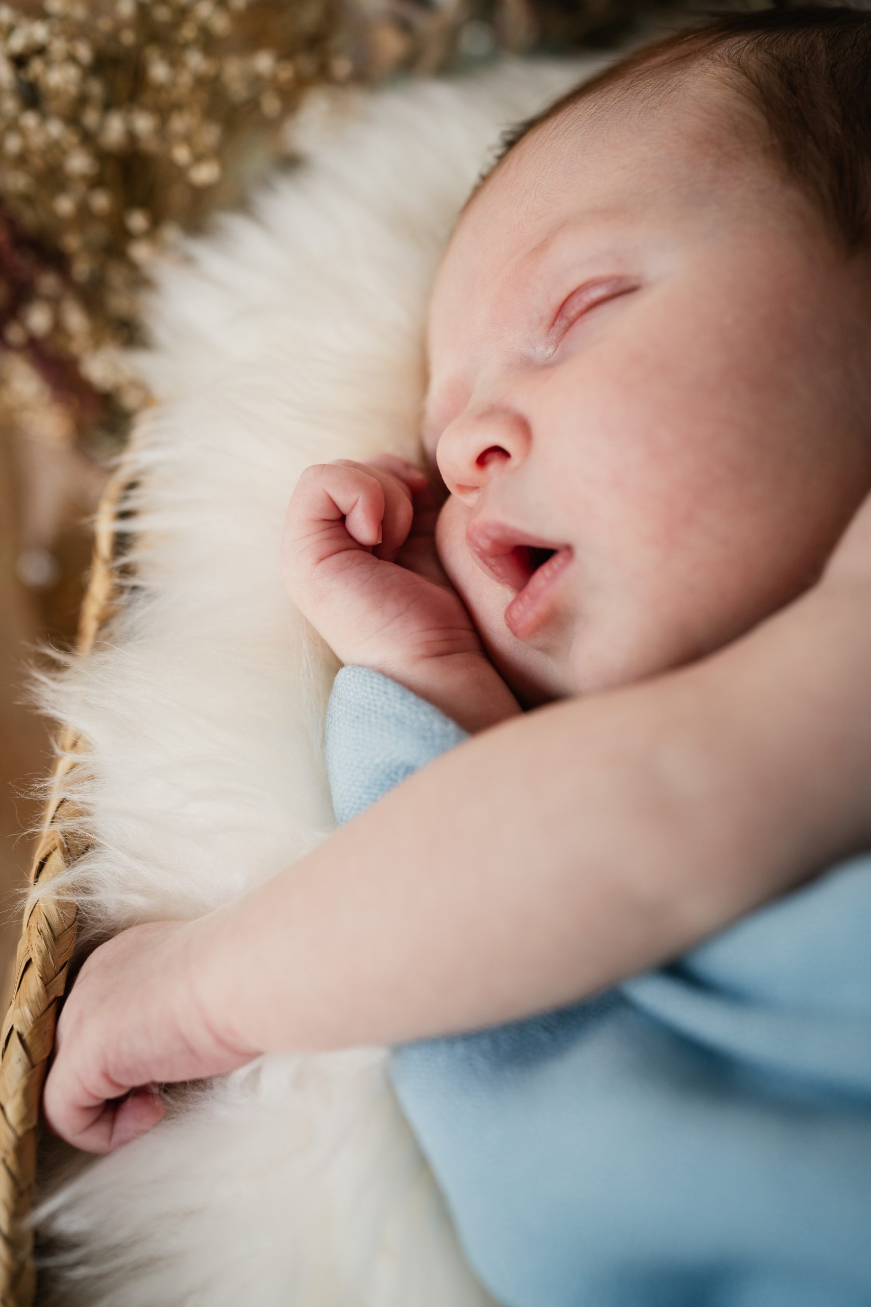 Je viens à ton domicile avec mon matériel photo et mes accessoires (paniers, petit lit, plaids, wraps, éléments décos, vêtements et accessoires bébé, réflecteur, chauffage d’appoint). Avant d’installer mes différents éléments et accessoires, j’enclenche le chauffage d’appoint car un bon shooting nouveau-né se passe dans une pièce bien chauffée. Je te laisse le temps de bien nourrir bébé s’il a besoin, de le changer et ensuite je m’occupe de l’envelopper avec la méthode d’emmaillotage le tout dans le plus grand respect du nouveau-né. En douceur, je le place dans son panier près d’une source de lumière et je commence mes prises de vue. En restant à l’écoute du nouveau-né et des parents, je m’adapte aux besoins et nous nous laissons porter par ce qui vient à ce moment toujours dans la bienveillance et le respect de chacun.